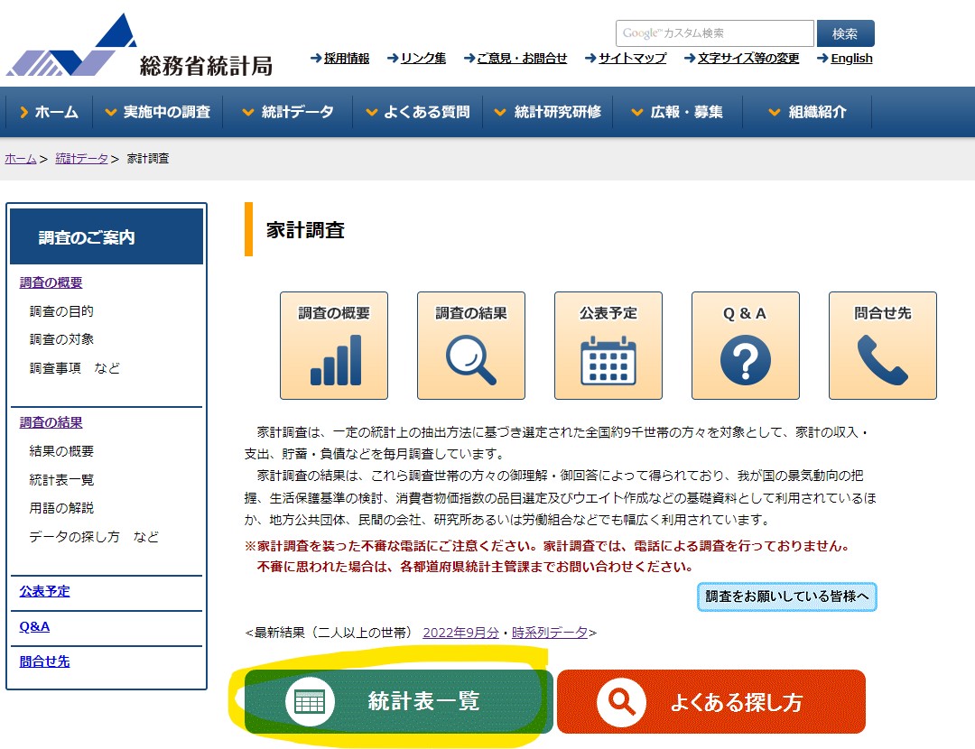 総務省統計局の統計データへのアクセス方法