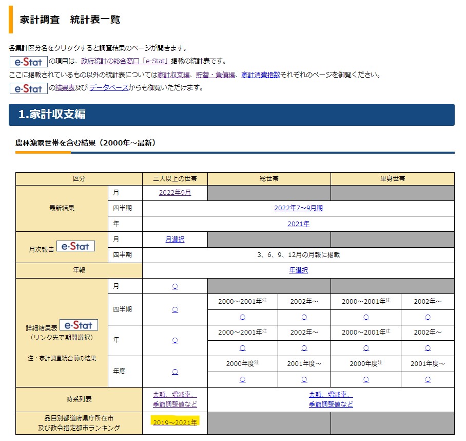 ③ 「品目別都道府県庁所在市及び政令指定都市ランキング」のリンクをクリックします。