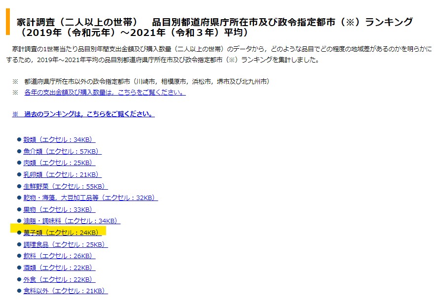 ④ 「菓子類」のリンクをクリックするとダウンロードされます。