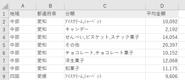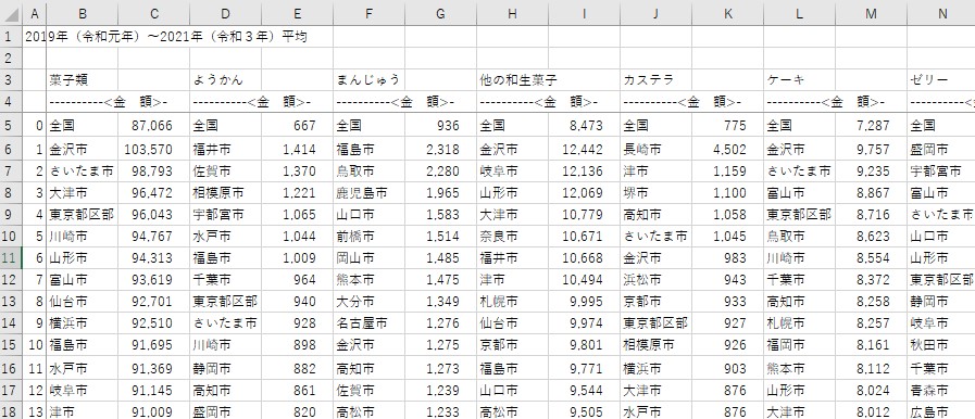 ① 今回は「各都道府県ごと、年間いくらぐらいお菓子代をかけているか」についてのデータが欲しいです。