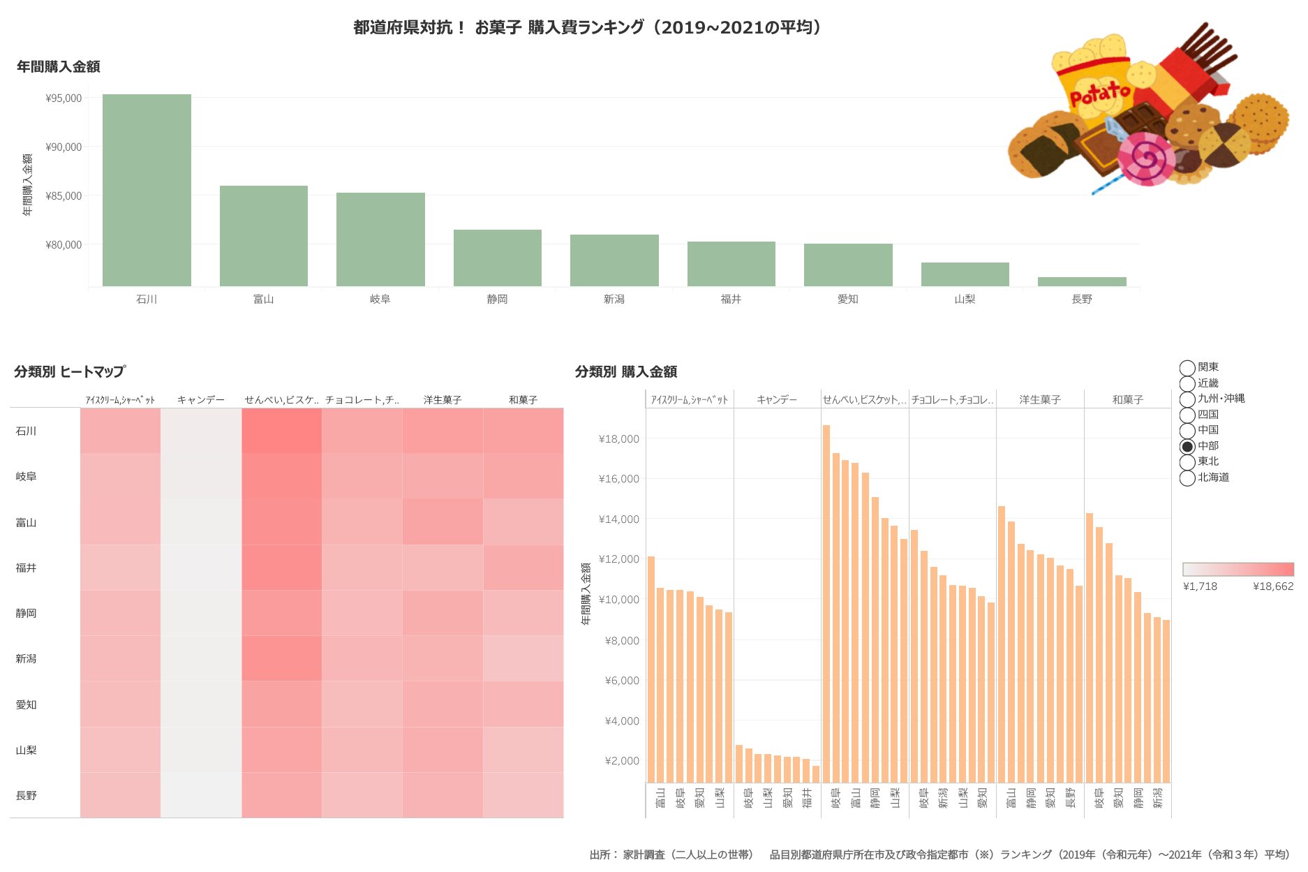 統計局のオープンデータをTableauで分析してみた!お菓子消費量ランキング編 まとめ